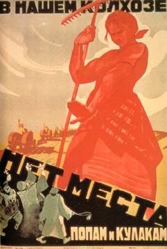 „ჩვენს კოლმეურნეობაში მღვდლებისა და კულაკების ადგილი არ არის“, საბჭოთა პოსტერი, ნიკოლაი მიხაილოვი, 1930 წ.